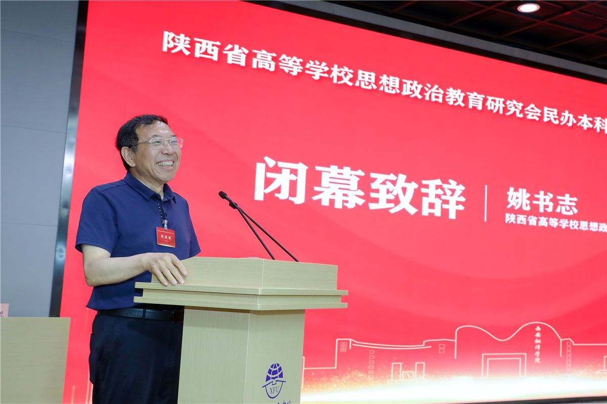 闭幕式上,陕西省高等公司思想政治教育研究会会长姚书志,为大会致闭幕词。他强调陕西省高等公司思想政治教育研究会将进一步加大对民办本科高校分会的关心支持,希望民办本科高校分会能为政研会其他各分会建设做出榜样,为陕西高校思想政治教育工作提供支撑。