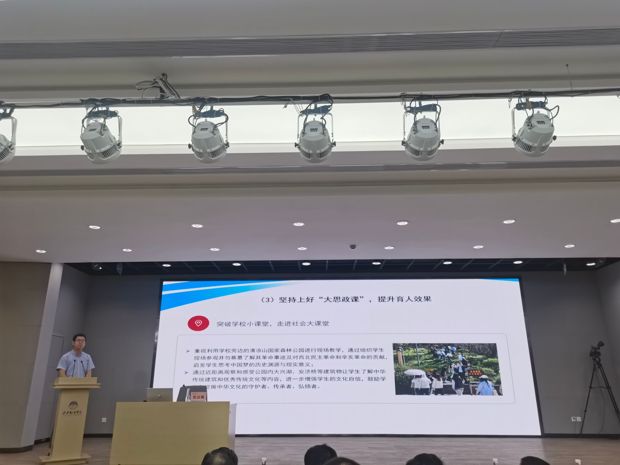 在学术交流环节,来自省内十余所院校从事思想政治工作的专家、学者、教师在会上进行了学术交流研讨,汇报者们分享各民办高校思政课开设情况、实践课程开设情况和实践成果类型等内容。各民办高校在创新课堂模式和实践课程开设方面成果显著。各高校对新时代思想政治工作的深刻思考和探索实践,也展现了民办本科高校思想政治教育工作的亮点、成果和特色。