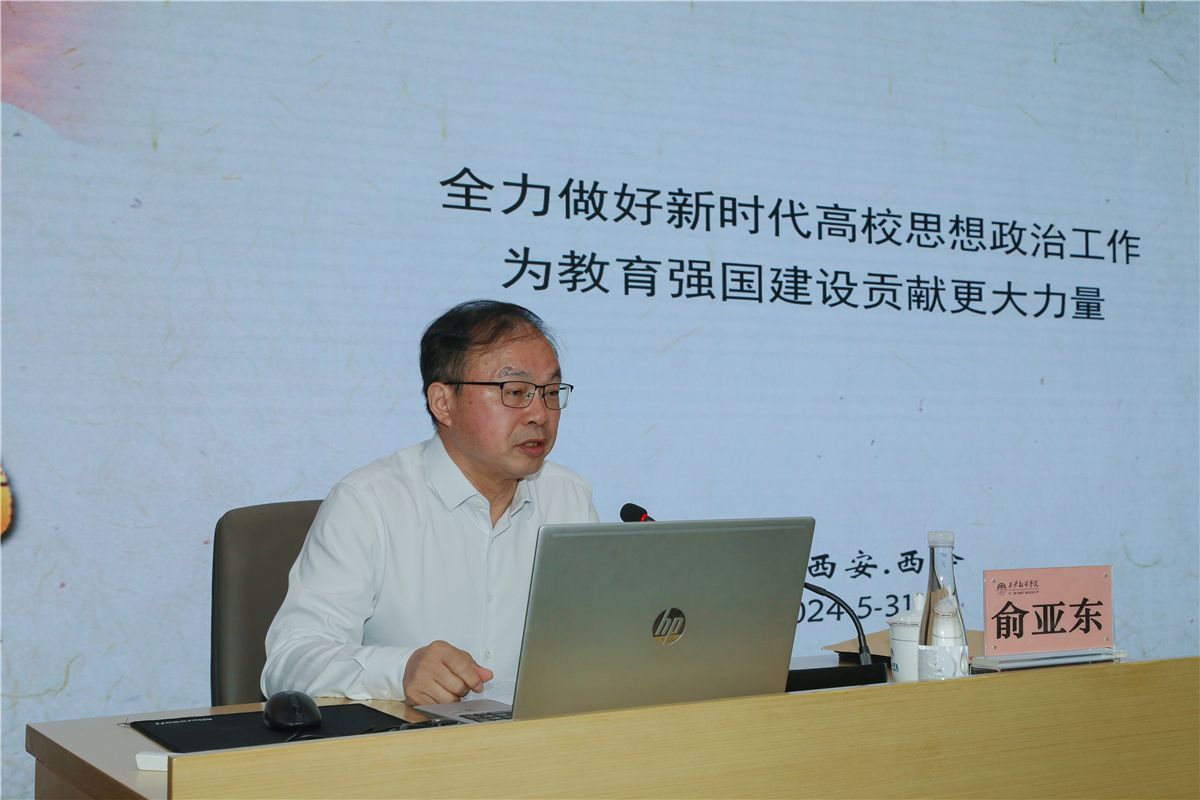 报告会上,中国民办教育协会党建专委会理事长、教育部思政司原一级巡视员俞亚东同志以《做好新时代高校思想政治工作 为教育强国建设贡献更大力量》为题,围绕立德树人,就如何做教师的思想工作,如何看新时代的思政工作,民办高公司党建思政工作时再突破、再提升的关键等问题展开讲解。他指出,民办高校办学应以党的利益为先,师生利益为重,举办者利益为基础,三者融合发展。他表示,借本次研讨会之势,各民办高校应进一步进行深入交流、思想碰撞,为陕西民办教育发展助力。