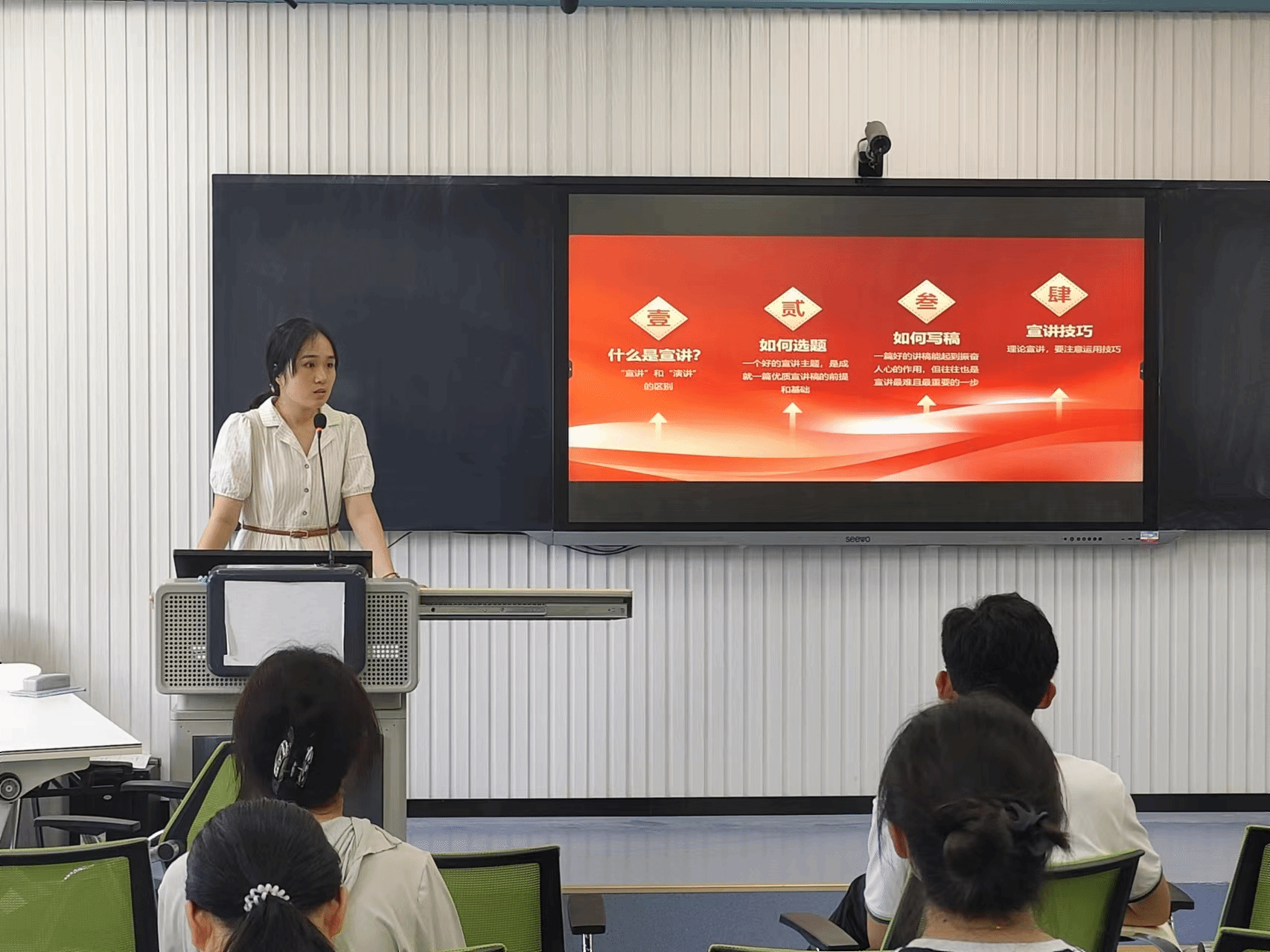 并从什么是宣讲,如何选题,如何写稿和宣讲技巧四个方面向宣讲团成员传授经验。