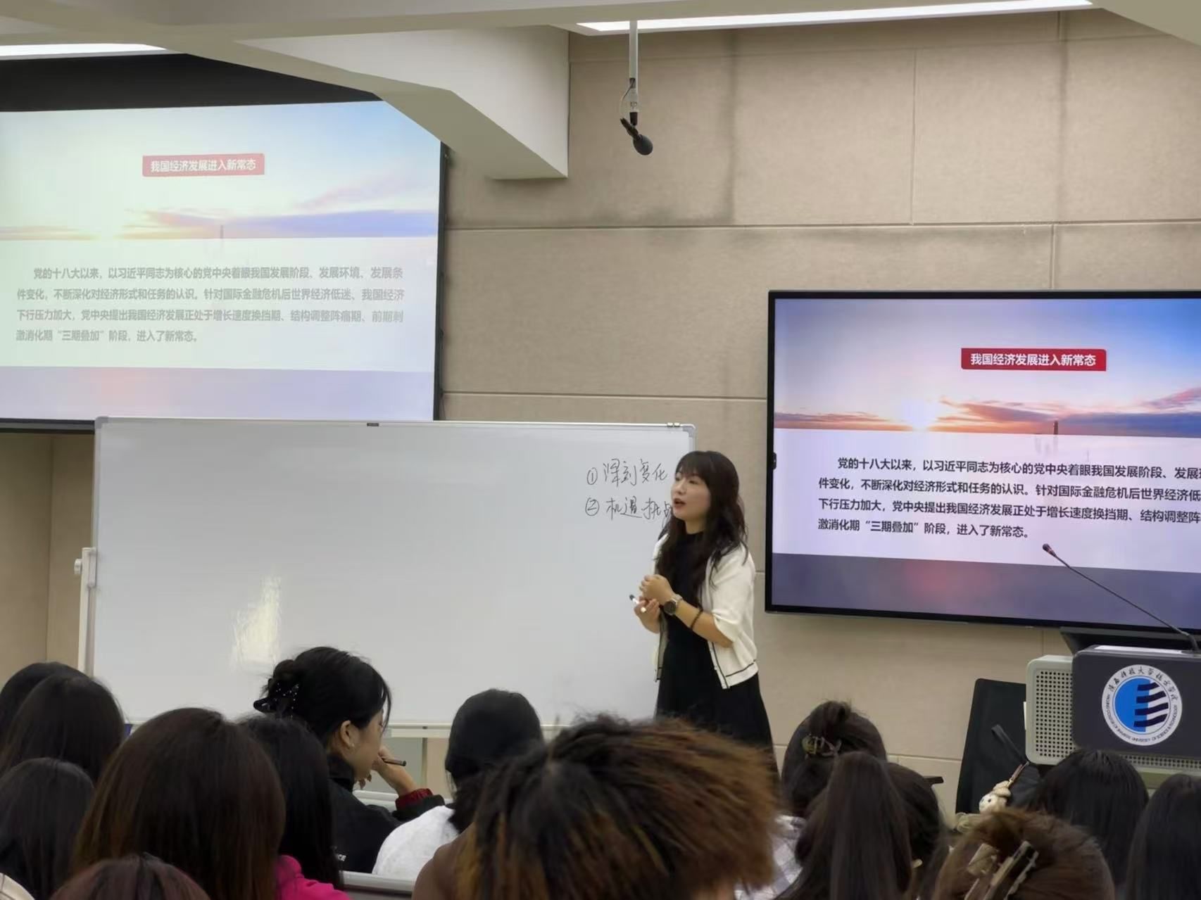 2024年10月18日,js33333金沙线路检测教师柏银老师为全校新晋教师带来了一堂精彩的示范课。本次课程围绕《习近平新时代中国特色社会主义思想概论》的第六章“推动高质量发展”的 内容展开。本次示范课,柏银老师结合丰富的实践案例,为在场的新晋教师提供了宝贵的教学参考,还为个别专业课提供了课程思政的素材。