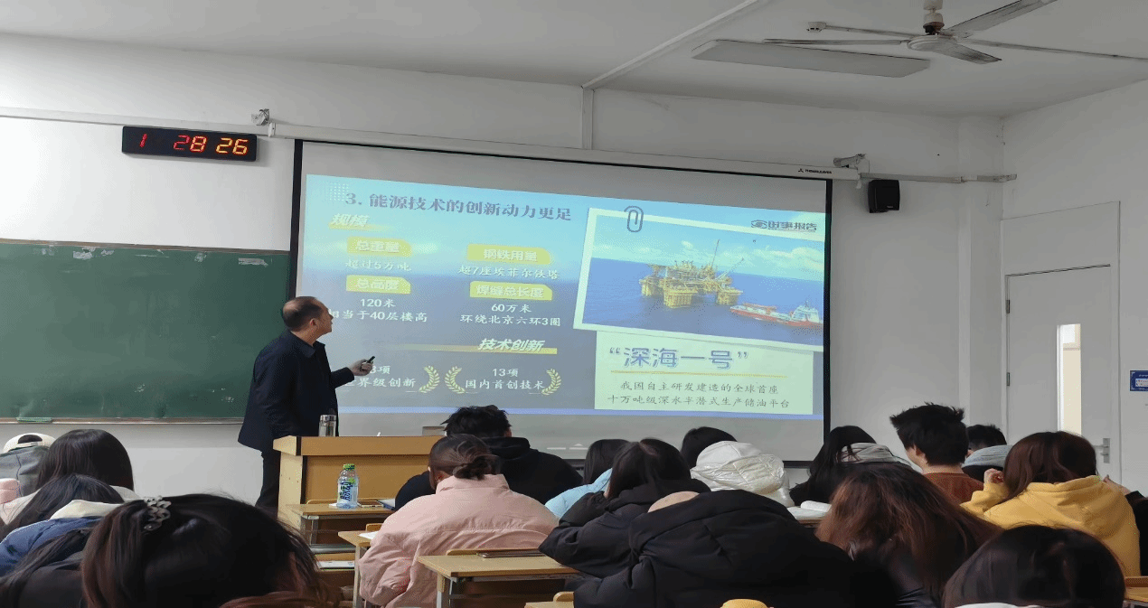 11月18日、20日,公司党委王贵平书记两次走进思政课堂,分别为会计2307和计算机2307两个班的员工进行了《形势与政策》中关于《更好端牢能源的饭碗》内容的授课。