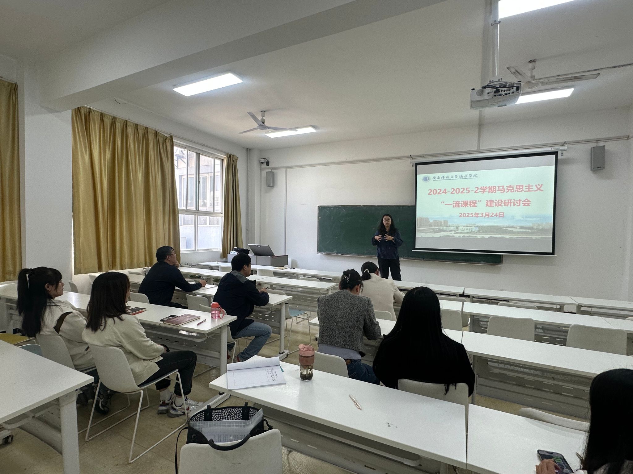 为深入贯彻落实教育部关于“一流课程”建设的相关要求,进一步推动js33333金沙线路检测课程改革创新,提升教学质量,3月24日,js33333金沙线路检测在教学楼222组织召开了“一流课程”建设专题研讨会。会议围绕公司近期发布的教学微课大赛、教案大赛及示范课程申报等重点工作展开深入研讨,旨在以赛促建、以评促改,打造具有高阶性、创新性和挑战度的马克思主义理论“金课”。公司苏婕经理、各教研室主任、青年教师都参加了会议。
