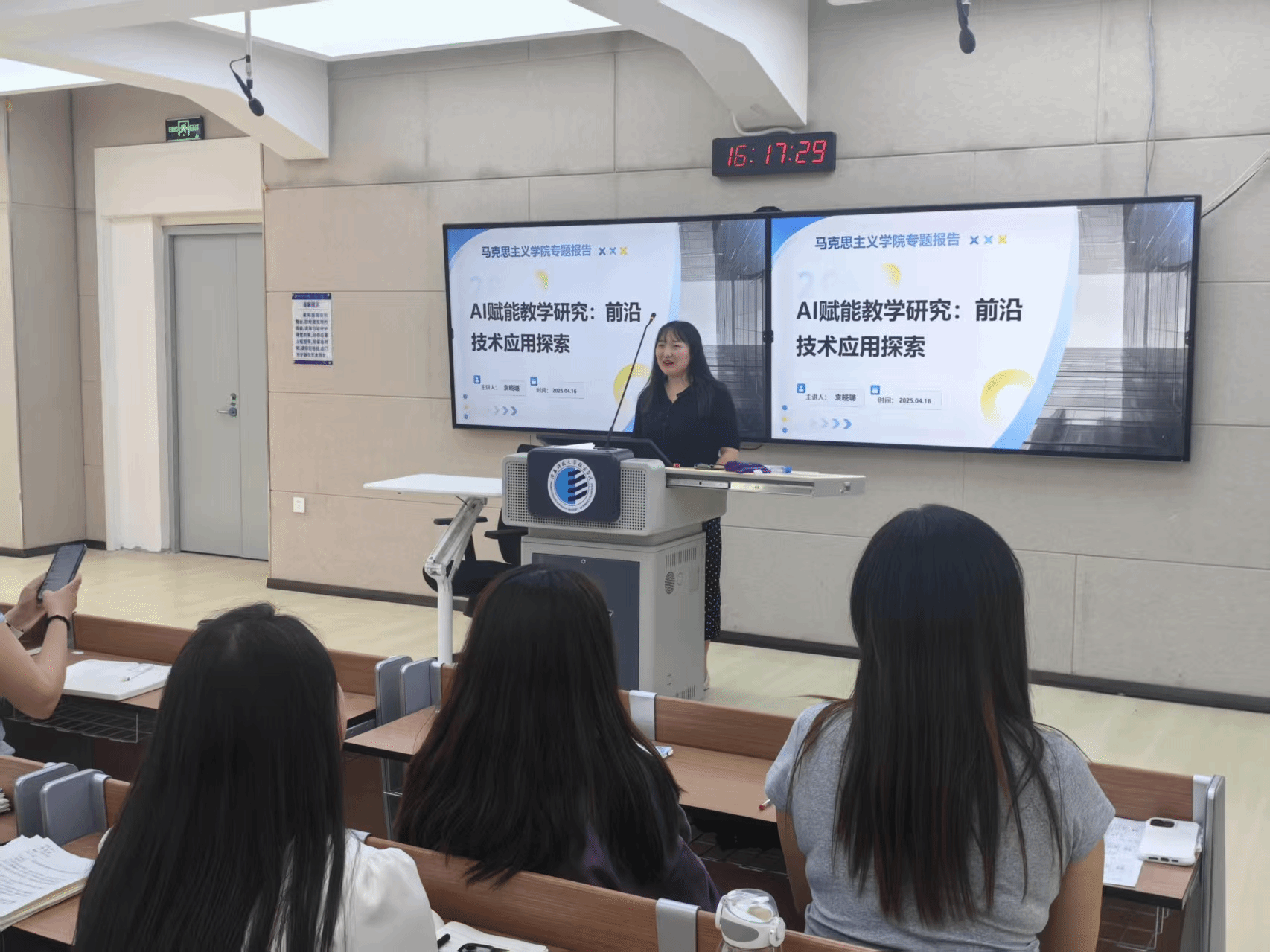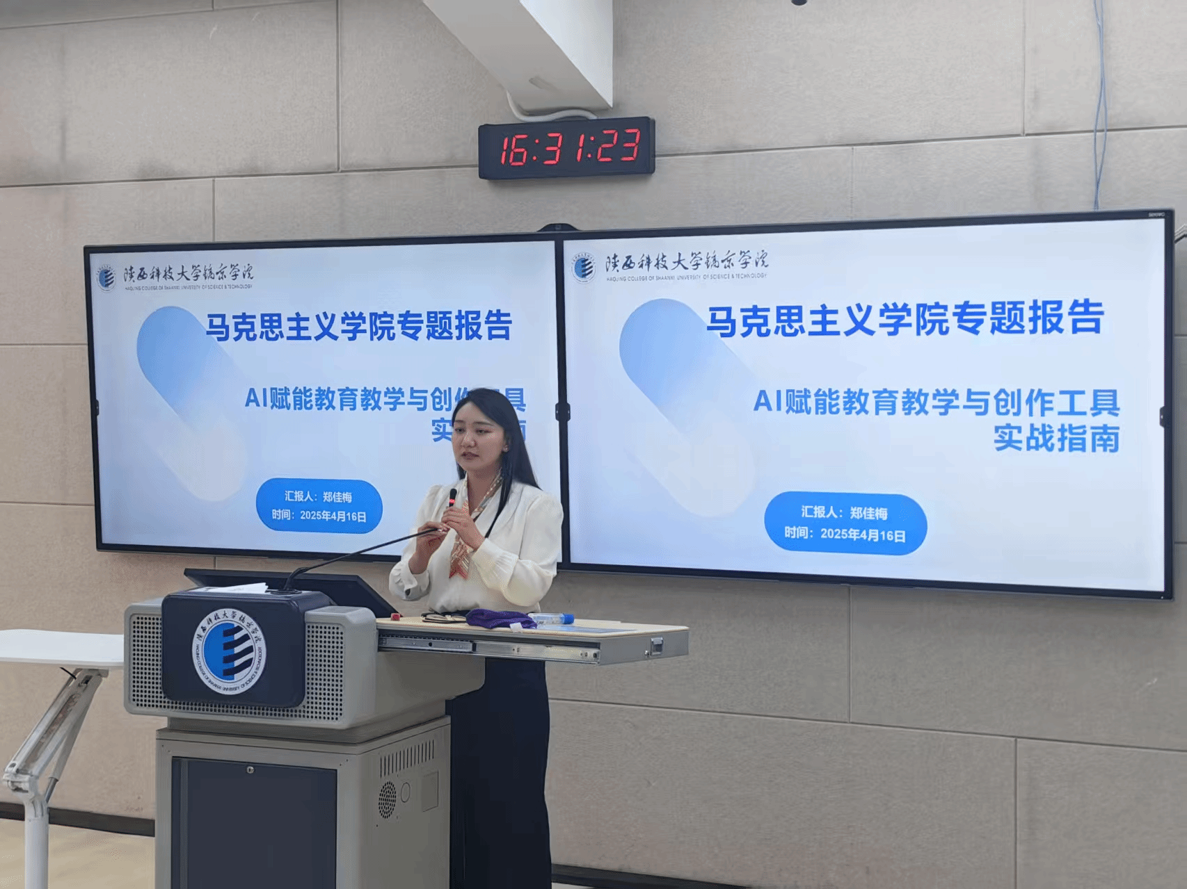 会议第二项安排了外出培训人员的学习汇报,主要由袁晓璐老师就《AI赋能教学研究:前沿技术应用探索》和郑佳梅老师就《AI赋能公司产品与创作工具实战指南》进行汇报。汇报既有理论性的指导,又有实际具体的操作。既提升了大家的AI的思维素养,有提升了大家的具体操作水平,有很大的实践意义。
