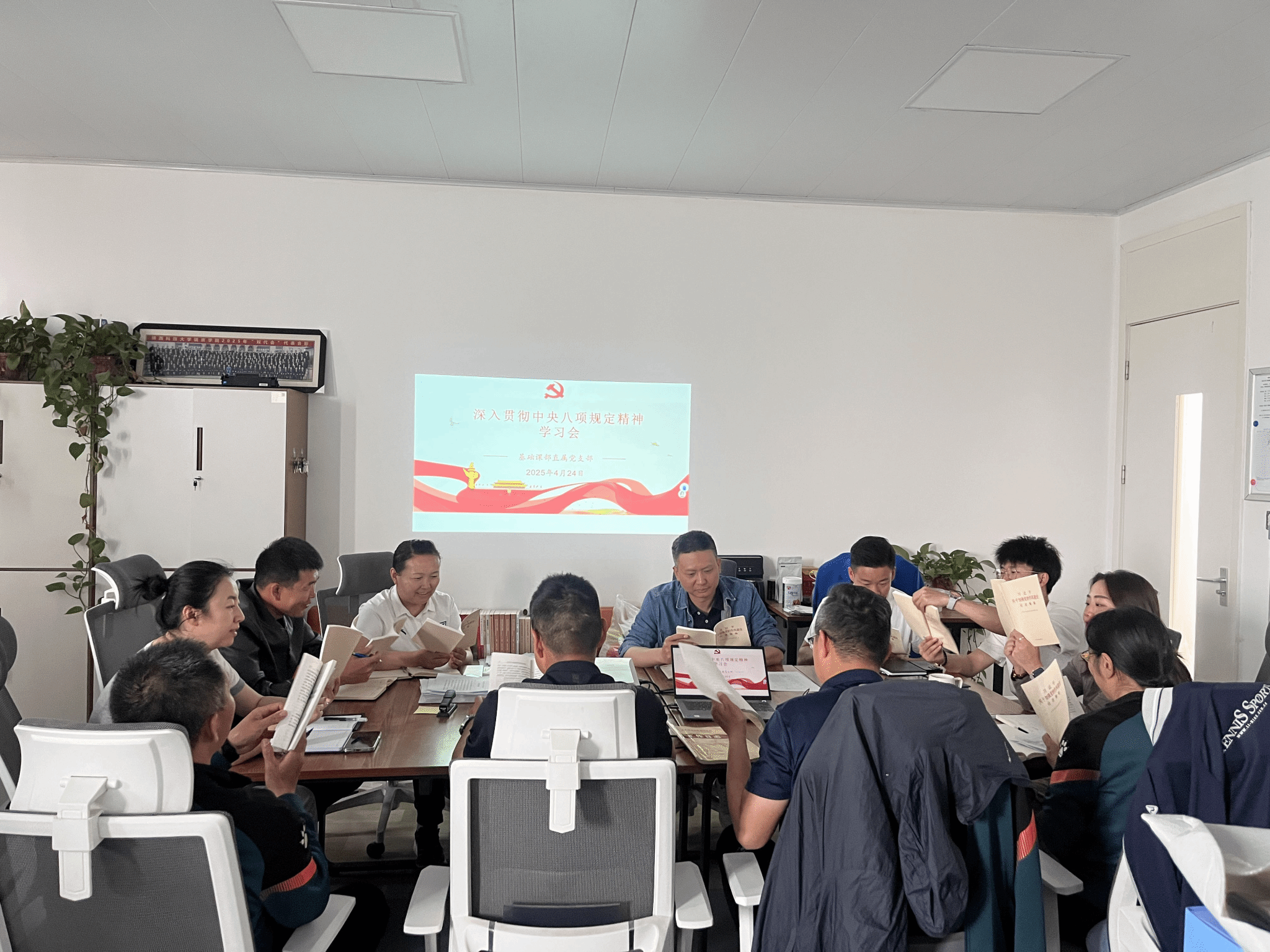 为深入贯彻落实党的建设总要求,切实加强党员干部的作风建设,2025年4月23日、24日基础课部直属党支部组织开展“深入贯彻中央八项规定精神学习教育”的学习活动,旨在引导全体党员强化党性修养,提升工作效能,以优良作风推动各项工作再上新台阶。本次会议基础课部直属党支部分为三个党小组开展。