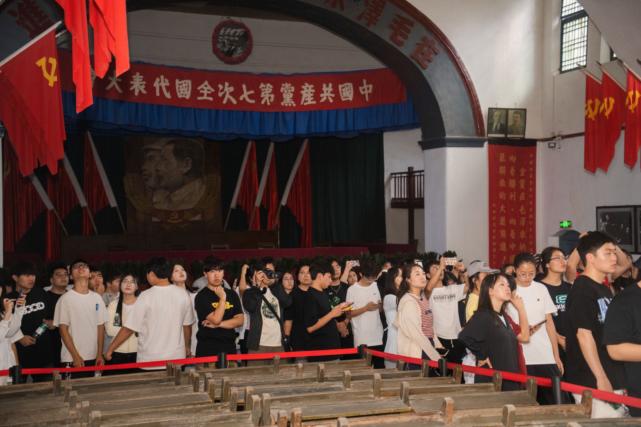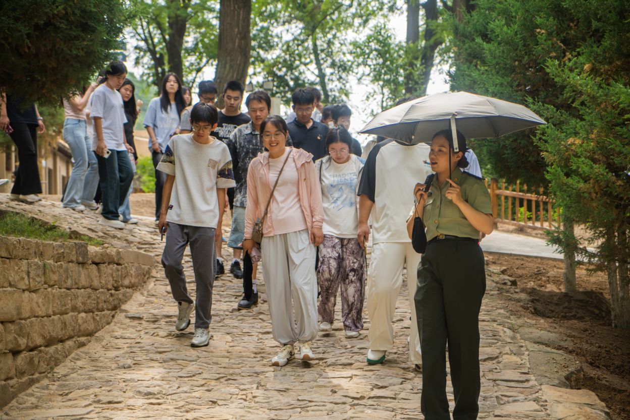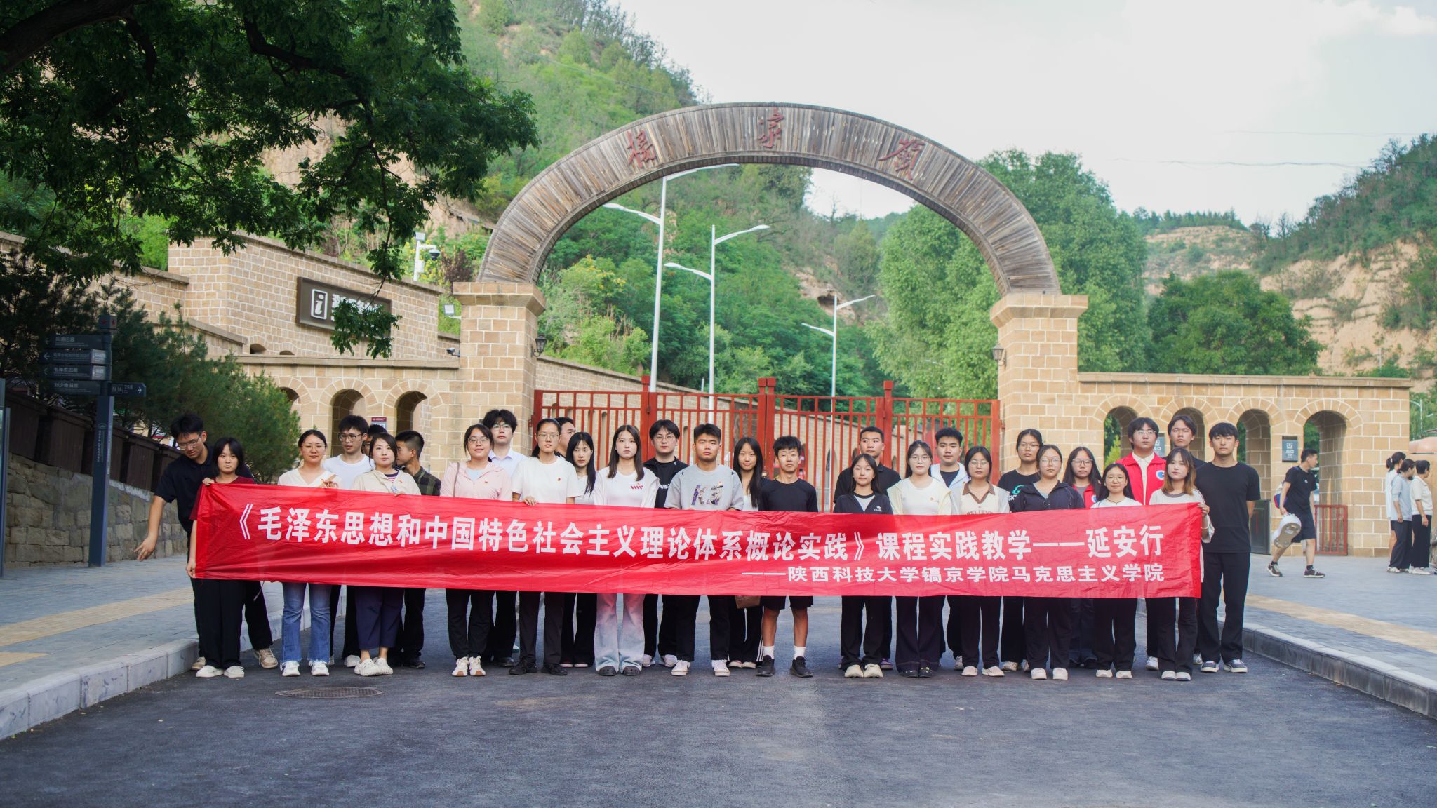 第二站,师生们走进杨家岭革命旧址,在讲解员带领下,参观了毛泽东等老一辈革命家旧居、中央大礼堂等。于窑洞故居,触摸历史温度,感受革命先辈在此为民族解放事业日夜操劳的往昔;在中央大礼堂,回溯党的七大等重要会议场景,体会延安时期革命先辈们在艰苦环境中坚守初心、砥砺奋进,深刻认识到红色政权来之不易,激励着师生传承红色基因,以实际行动践行使命担当。