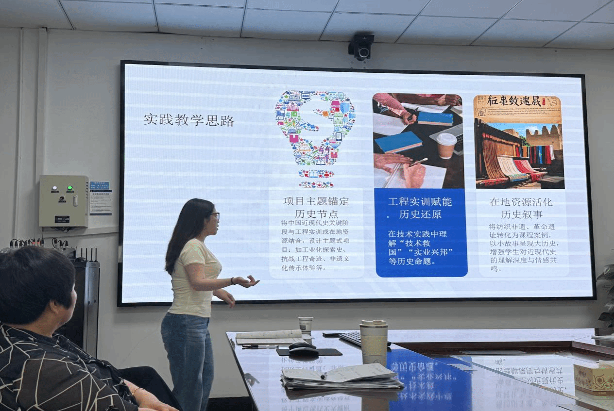 秦亚楠老师提出“在地化历史教育”与“项目驱动式思政”双理念引领。通过挖掘本地纺织非遗、革命遗址等资源,将“技术救国”“实业兴邦”等历史命题融入工程实训,让员工在车床操作、3D打印等实践中还原“抗战工程奇迹”“工业化探索史”等历史场景。这种“做中学,史为鉴”的教学理念,打破了传统思政课“重理论、轻实践”的局限,实现了从“知识灌输”到“体验共鸣”的转变。