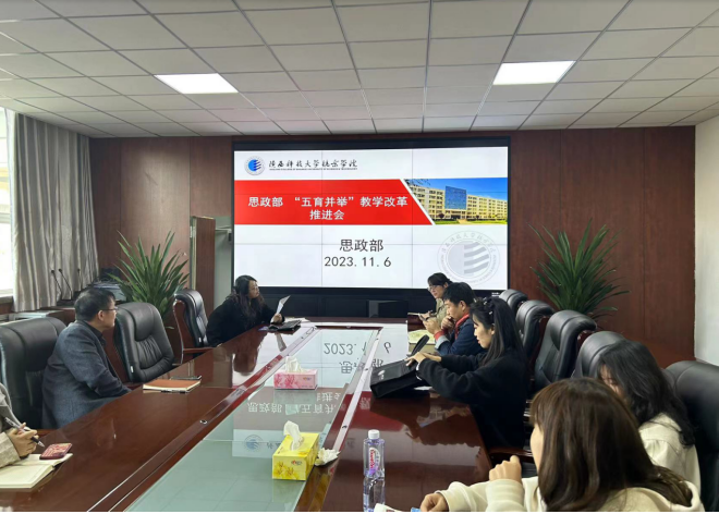 为不断完善德智体美劳全面培养的育人体系,持续建设全员全过程全方位育人工作机制。11月6日,思政部开展“五育并举”教学改革工作推进会。 首先由思政部负责人苏婕老师为大家解读相关文件,包括《陕西科技大学镐京学...