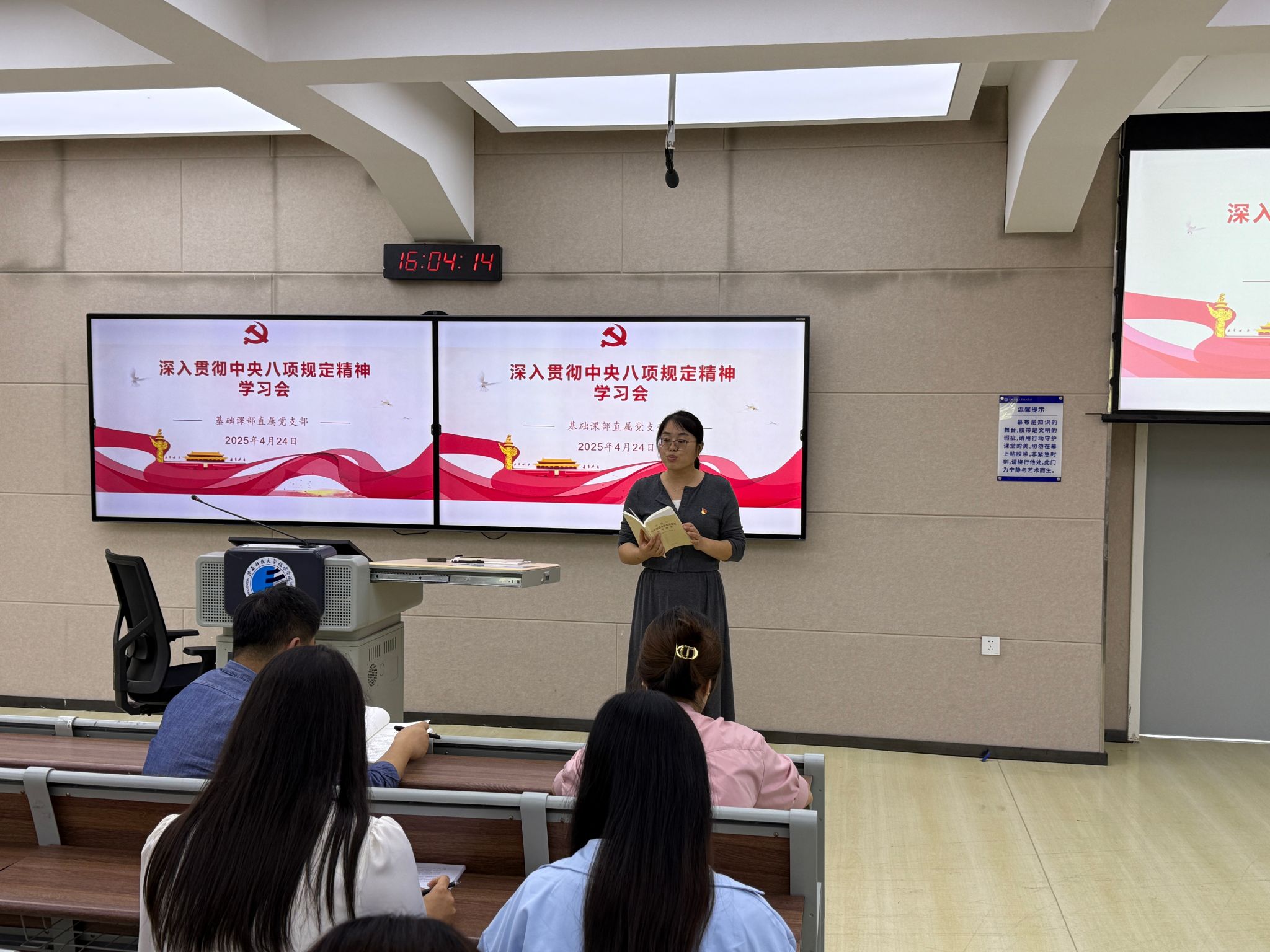 为深入贯彻落实党的建设总要求,切实加强党员干部的作风建设,2025年4月23日、24日基础课部直属党支部组织开展“深入贯彻中央八项规定精神学习教育”的学习活动,旨在引导全体党员强化党性修养,提升工作效能,以优良作风推动各项工作再上新台阶。本次会议基础课部直属党支部分为三个党小组开展。前期各小组负责同志带领大家学习《习近平关于加强党的作风建设》论述摘编的第五章到第九章。分为自学和集中学习相结合的方式。为了让党员干部更加直观地认识到作风建设的重要性,...