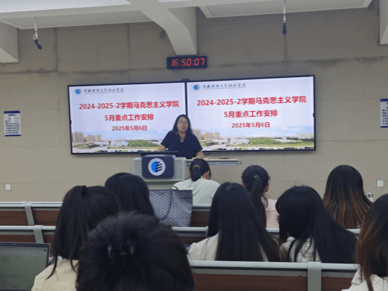 为进一步提升教学质量,强化教学管理,2025年5月6日,马克思主义中国化教研室在112办公室召开期中教学督导反馈会。教研室全体教师参会,会议就期中教学检查情况进行深入反馈,并对近期教学比赛及教学档案整理等工作进行全面部署。会上,教研室主任魏晓晓首先对期中教学检查情况进行详细反馈。在课堂教学方面,督导组肯定了部分教师将党的最新理论成果融入课堂的创新做法,例如在《毛泽东思想和中国特色社会主义理论体系概论》课程中,...