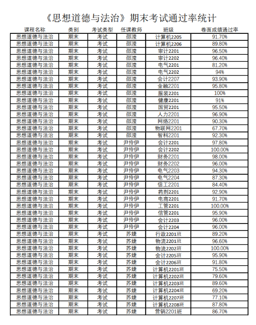 2023年3月24日,思政部—思政德育教研室按照公司和教务处有关试卷通过率专项检查的要求,对2022-2023学年第一学期《思想道德与法治》课程期末考试试卷的卷面分数和通过率进行了检查。 首先,思政德育教研室尹伶伊老...