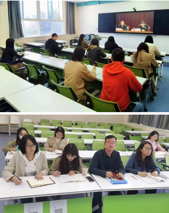 4月27日全国高校思政课2023年版教材使用培训会开幕。教育部党组成员、副部长王嘉毅、中宣部理论局副局长陈启清出席开幕式并讲话。思政部在教学楼217设立直播分会场。思政部主任苏婕、教研室主任魏晓晓和其他专任教师...