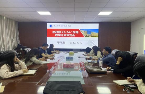 2023年4月17日思政部在第一会议室召开23-24-1学期教学计划的审定会,思政部全体老师参会,会议由思政部主任苏捷老师主持。 首先,依据专业人才培养方案,认真审定各年级专业23-24-1学期教学计划,针对所开设课程的周...
